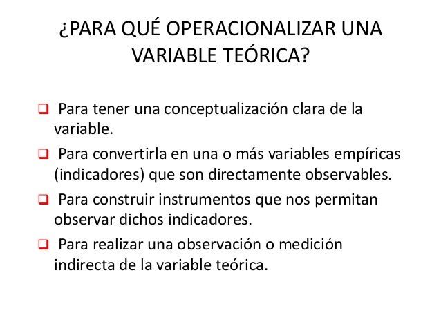 construir instrumentos que nos permitan observar dichos indicadores. q Para realizar una observación o medición indirecta de la variable