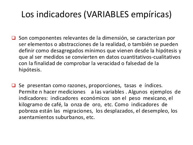 - 18. Los indicadores (VARIABLES empíricas) q Son