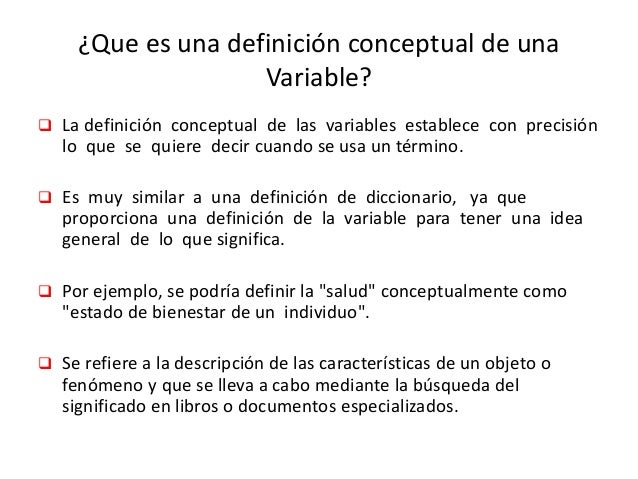 de una variable 1. VARIABLE Definición Conceptual Definición